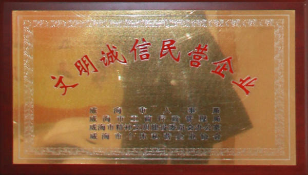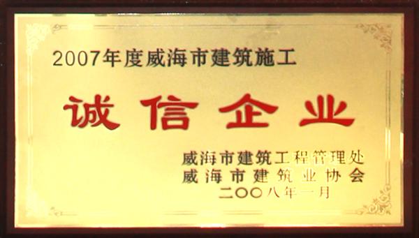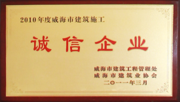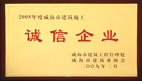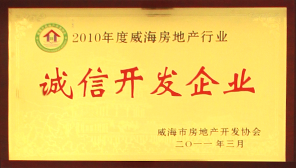 公司連續(xù)八年榮獲威海市“誠信開發(fā)企業(yè)”、“建筑施工誠信企業(yè)”,連續(xù)九年被評為威海市級“守合同重信用企業(yè)”,多次被評為威海市“市級文明單位”、“質量管理先進企業(yè)”、 “安全管理先進企業(yè)”,乳山市“優(yōu)秀企業(yè)”、“先進民營企業(yè)”、“納稅明星企業(yè)”,在社會上逐步樹立了誠信、穩(wěn)健的企業(yè)形象。